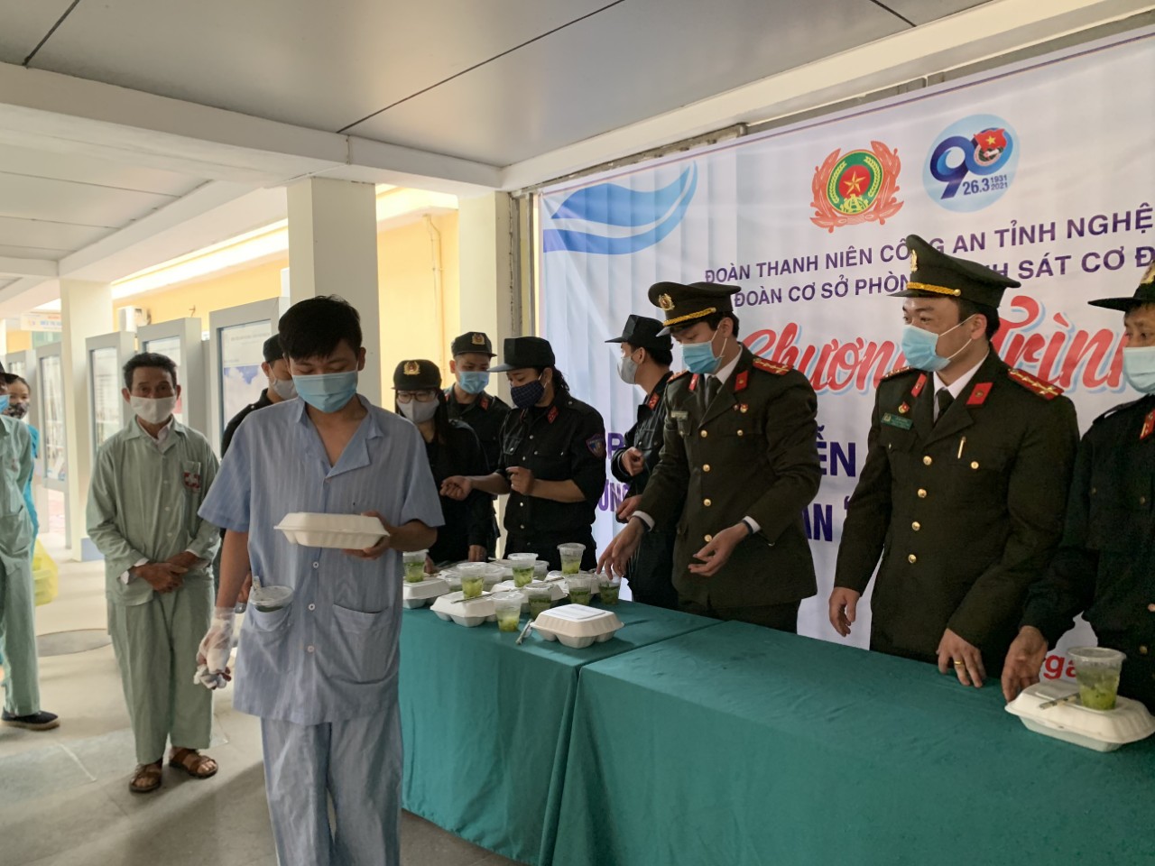 Hàng trăm suất cơm miễn phí được các chiến sĩ Cảnh sát cơ động – Công an Tỉnh Nghệ An phối hợp với chi đoàn thanh niên Bệnh viện phát tận tay làm ấm lòng các thân nhân và bệnh nhân nghèo đang điều trị tại Bệnh viện Chấn thương Chỉnh hình Nghệ An.