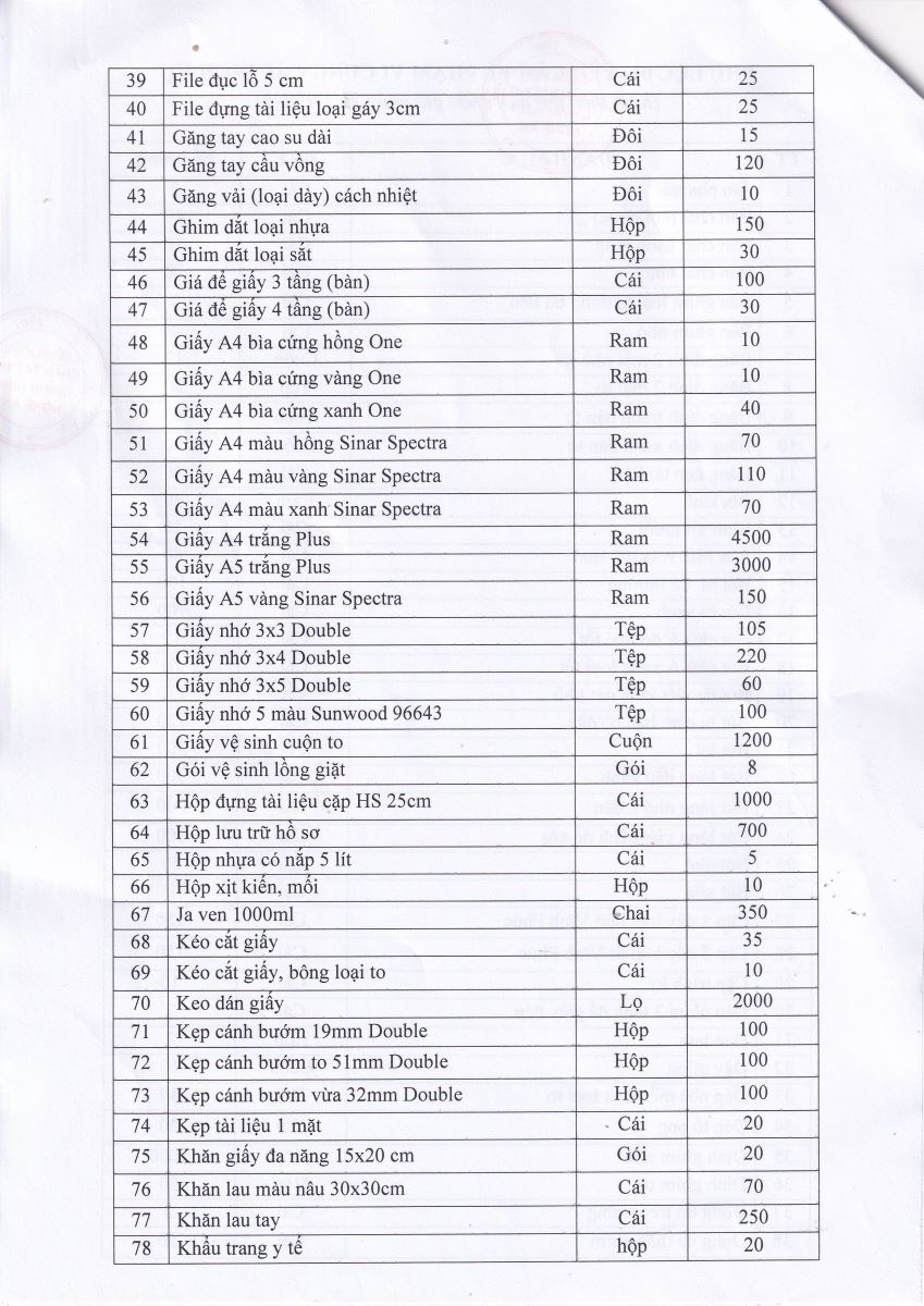 Thư mời chào giá cung cấp VPP, ấn chỉ, túi đựng chất thải và DV bảo vệ